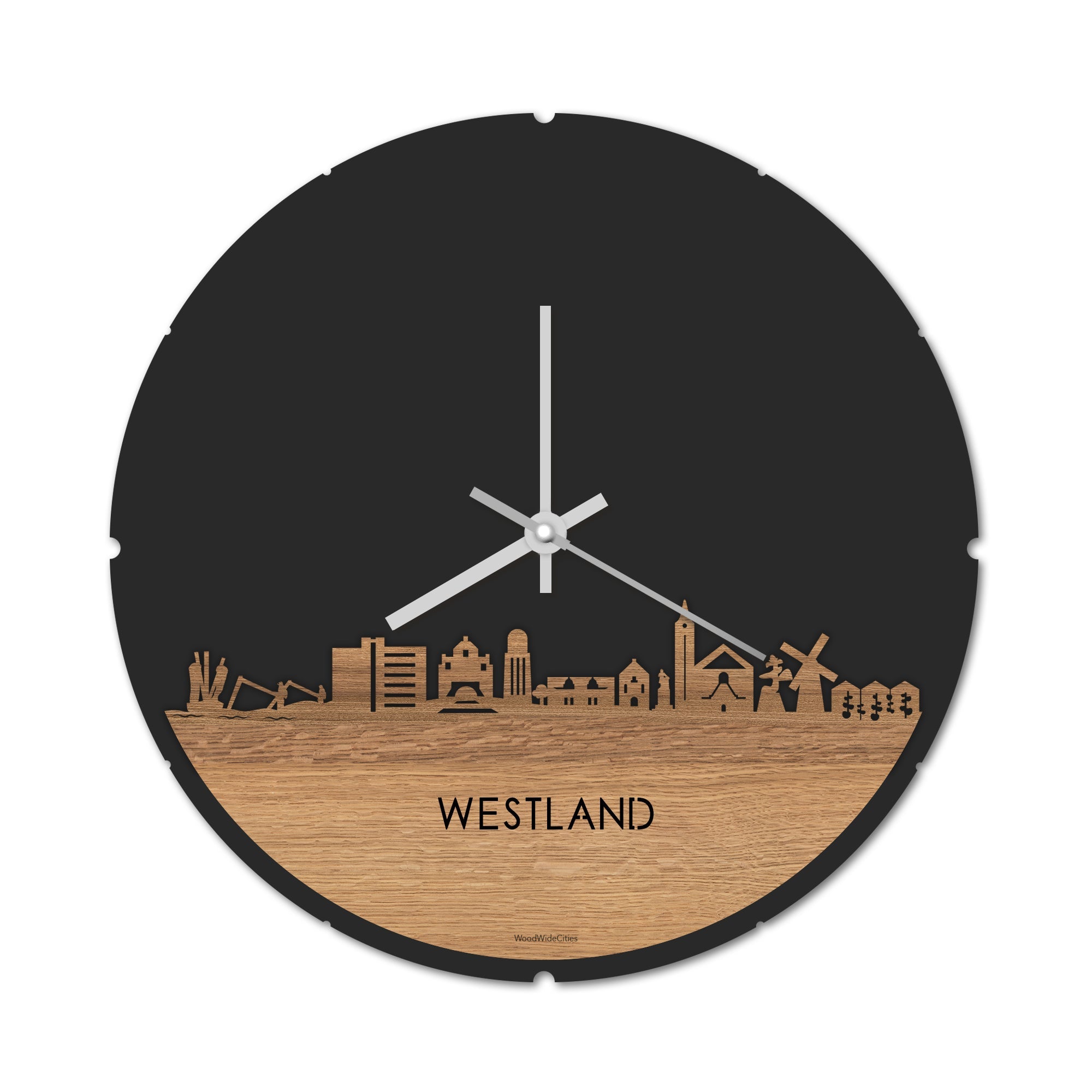 Skyline Klok Westland Eiken houten cadeau decoratie relatiegeschenk van WoodWideCities
