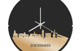 Blijf bij de tijd met de ronde skyline wandklok Dat geldt dubbelop als je deze multifunctionele houten wandklok van WoodWideCities in huis haalt. Deze klok met afbeelding van de skyline van Zoetermeer houdt je bij de tijd, maar neemt je ook mee terug naar de stad waar je bent geboren of waar je hebt gestudeerd. Een mooie herinnering, elke keer als je kijkt hoe laat het is! Of wat dacht je van een afscheidscadeau, een tijdloos geschenk voor moeder- of vaderdag en andere mijlpalen zoals trouwerijen, het behalen van diploma’s en het openen van een nieuw kantoor of bedrijf, een spetterende binnenkomer voor je kind die gaat studeren in een andere stad of een ideaal cadeau voor de housewarming van kennissen en vrienden.