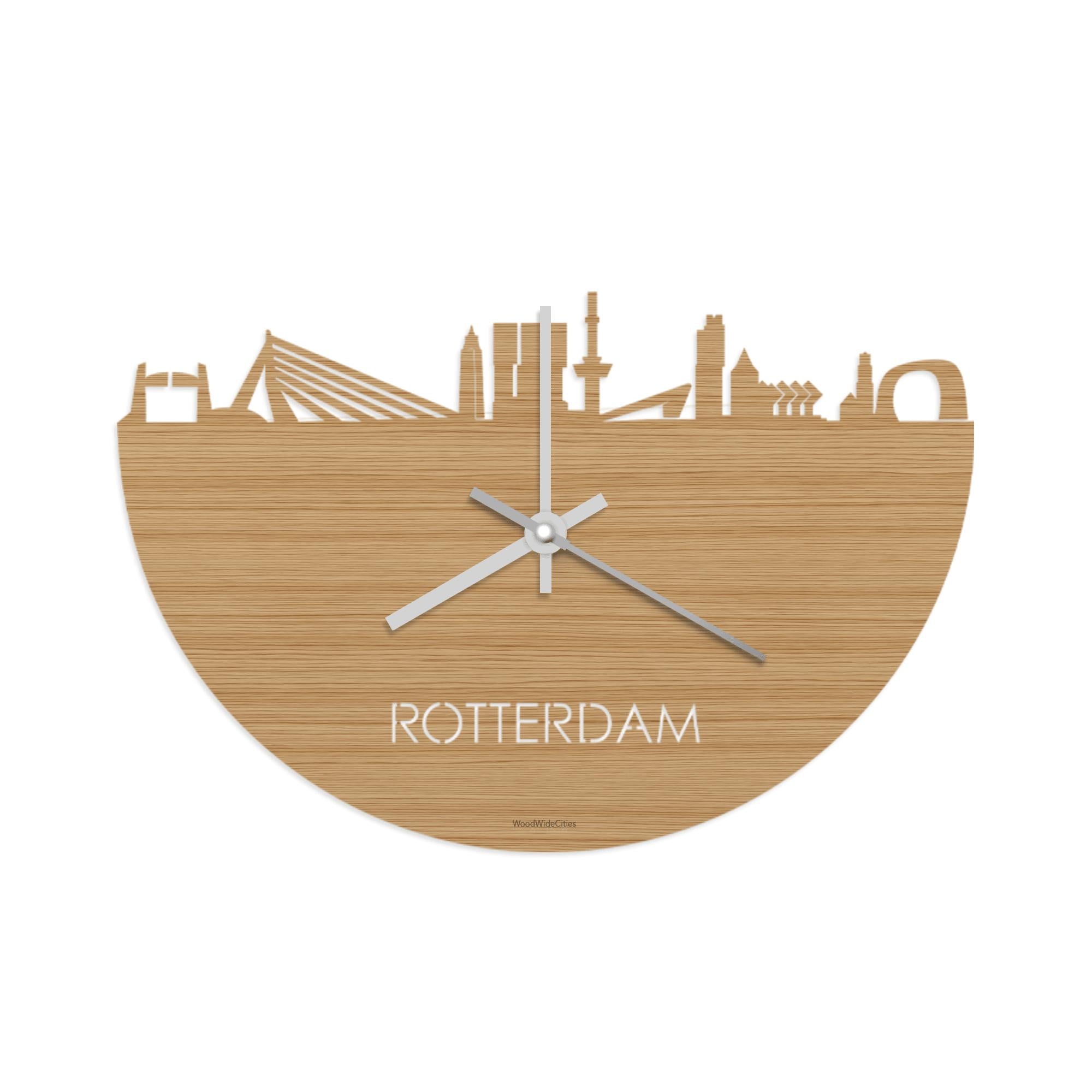 Skyline Klok Rotterdam Bamboe Bamboe  houten cadeau wanddecoratie relatiegeschenk van WoodWideCities