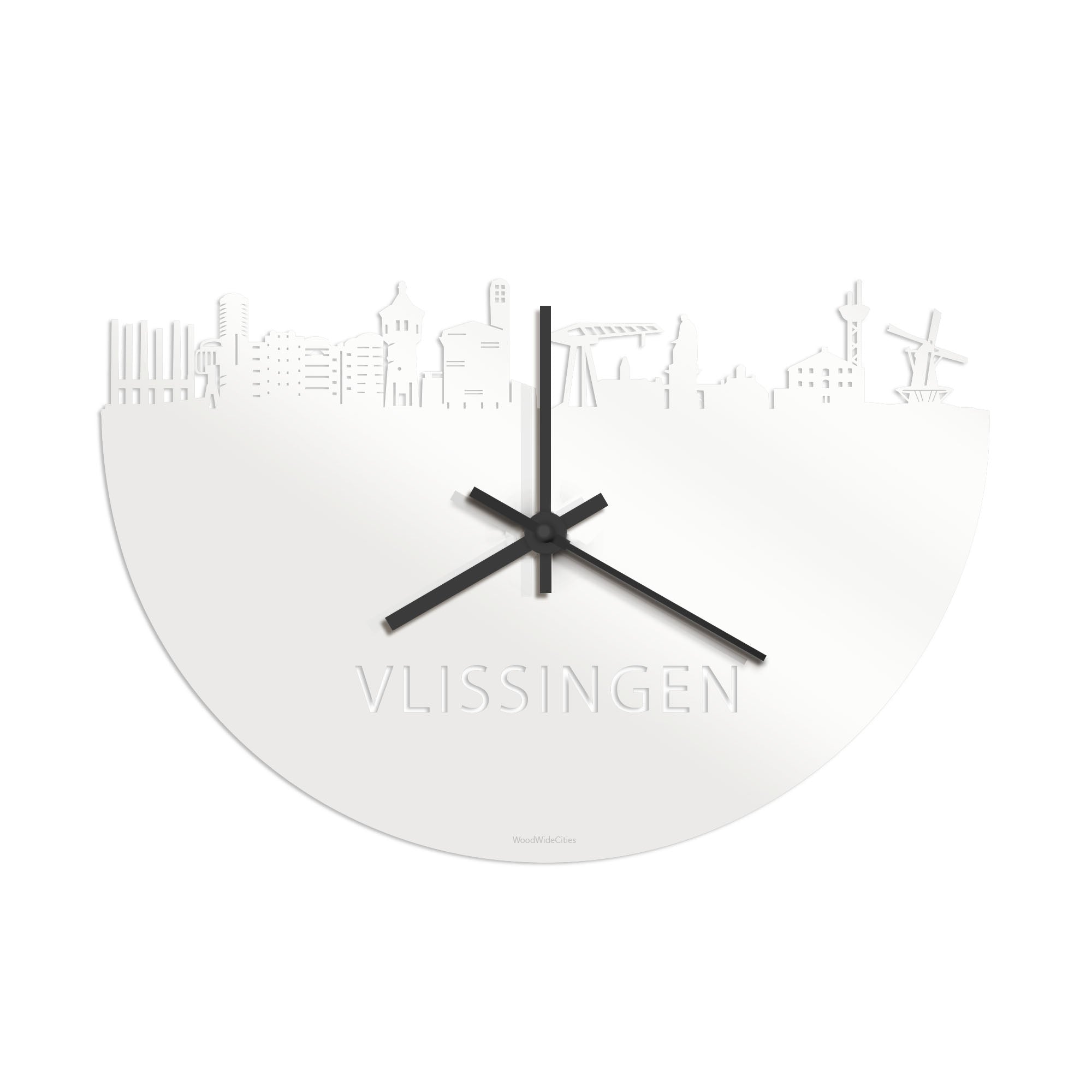 Skyline Klok Vlissingen Wit Glanzend houten cadeau decoratie relatiegeschenk van WoodWideCities