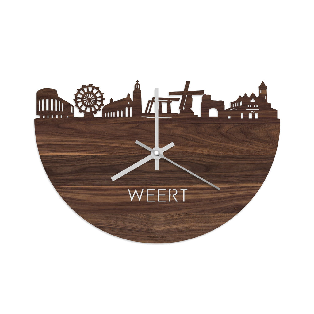 Time flies when you’re having fun! Dat geldt dubbelop als je deze multifunctionele houten Skyline Klok Weert Noten in huis haalt. Deze klok met de skyline van Weert houdt je bij de tijd, maar neemt je ook mee terug naar de stad waar je bent geboren of waar je hebt gestudeerd. Een mooie herinnering, elke keer als je kijkt hoe laat het is! Of wat dacht je van een afscheidscadeau, een tijdloos geschenk voor moeder- of vaderdag en andere mijlpalen zoals trouwerijen, het behalen van diploma’s en het openen van een nieuw kantoor of bedrijf, een spetterende binnenkomer voor je kind die gaat studeren in een andere stad of een ideaal cadeau voor de housewarming van kennissen en vrienden.