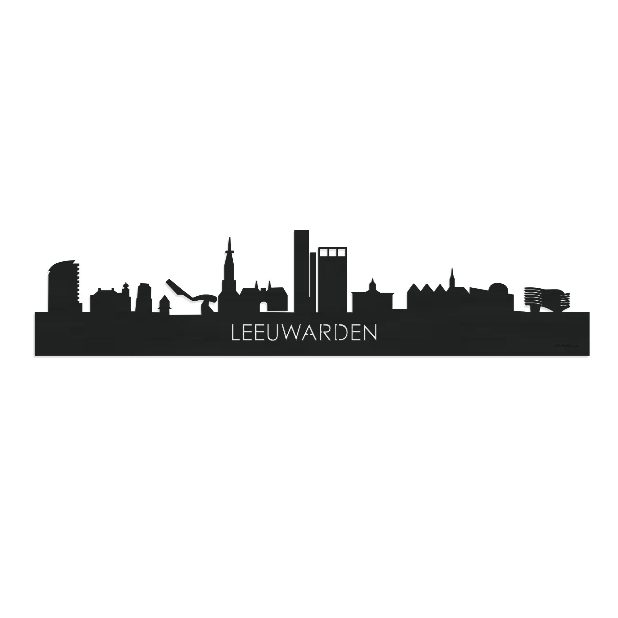Skyline Leeuwarden Zwart houten cadeau decoratie relatiegeschenk van WoodWideCities