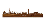 De skyline van Lelystad is verkrijgbaar in verschillende soorten hout: zwart MDF, bamboe, eiken, noten en palissander. De houtsoorten zijn duurzaam, ecologisch en gekeurd.