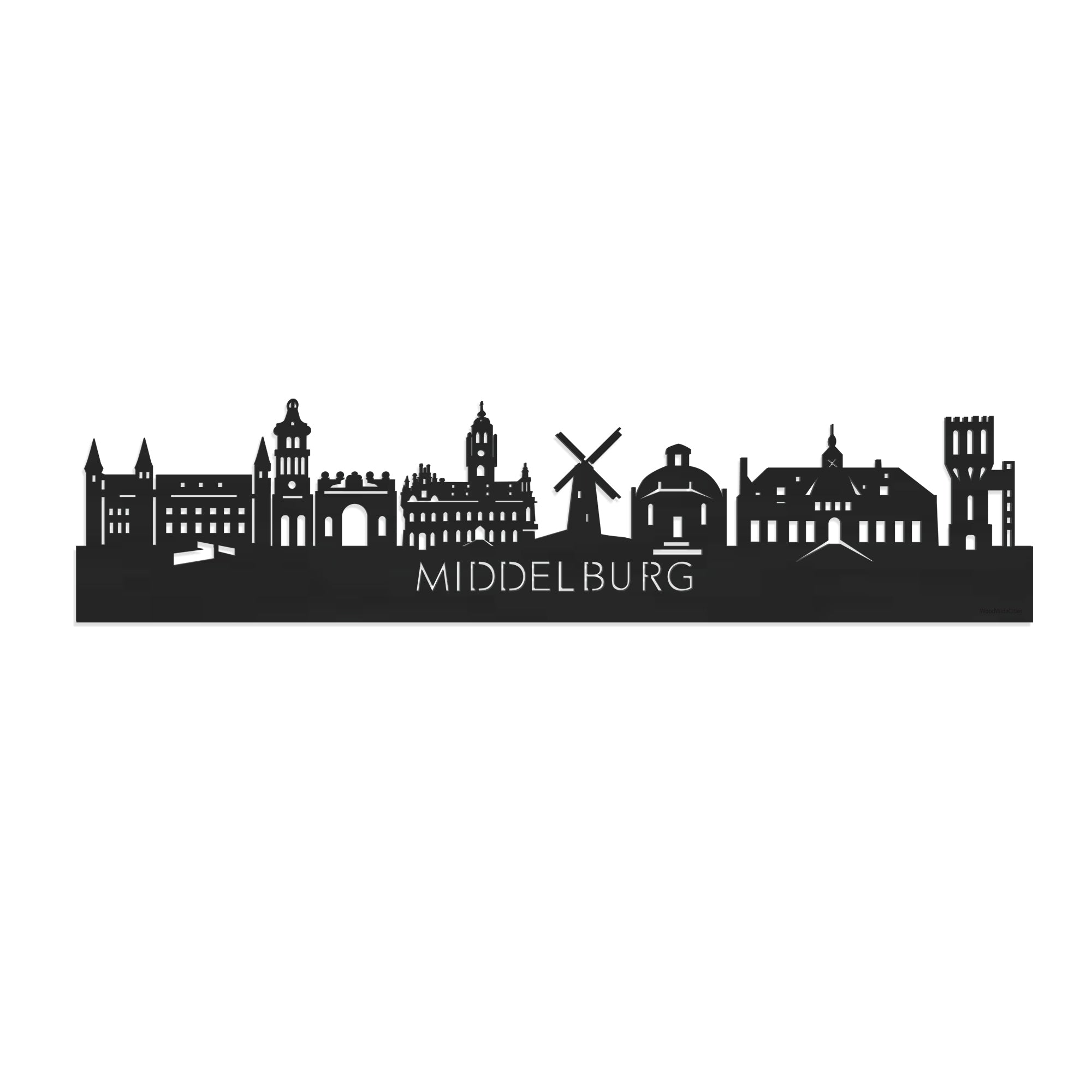 Je herkent ze vast allemaal; de hoogtepunten van deze geliefde plaats: Zeeuws Museum, De lange jan, Koepoort, Stadshuis Middelburg, Molen de Hoop, Oostkerk, Kloveniersdoelen en Watertoren Middelburg. De skyline is gemaakt in samenwerking met Middelburg ondernemers en het silhouet komt uit het creatieve brein van een architect, dus alle verhoudingen kloppen.