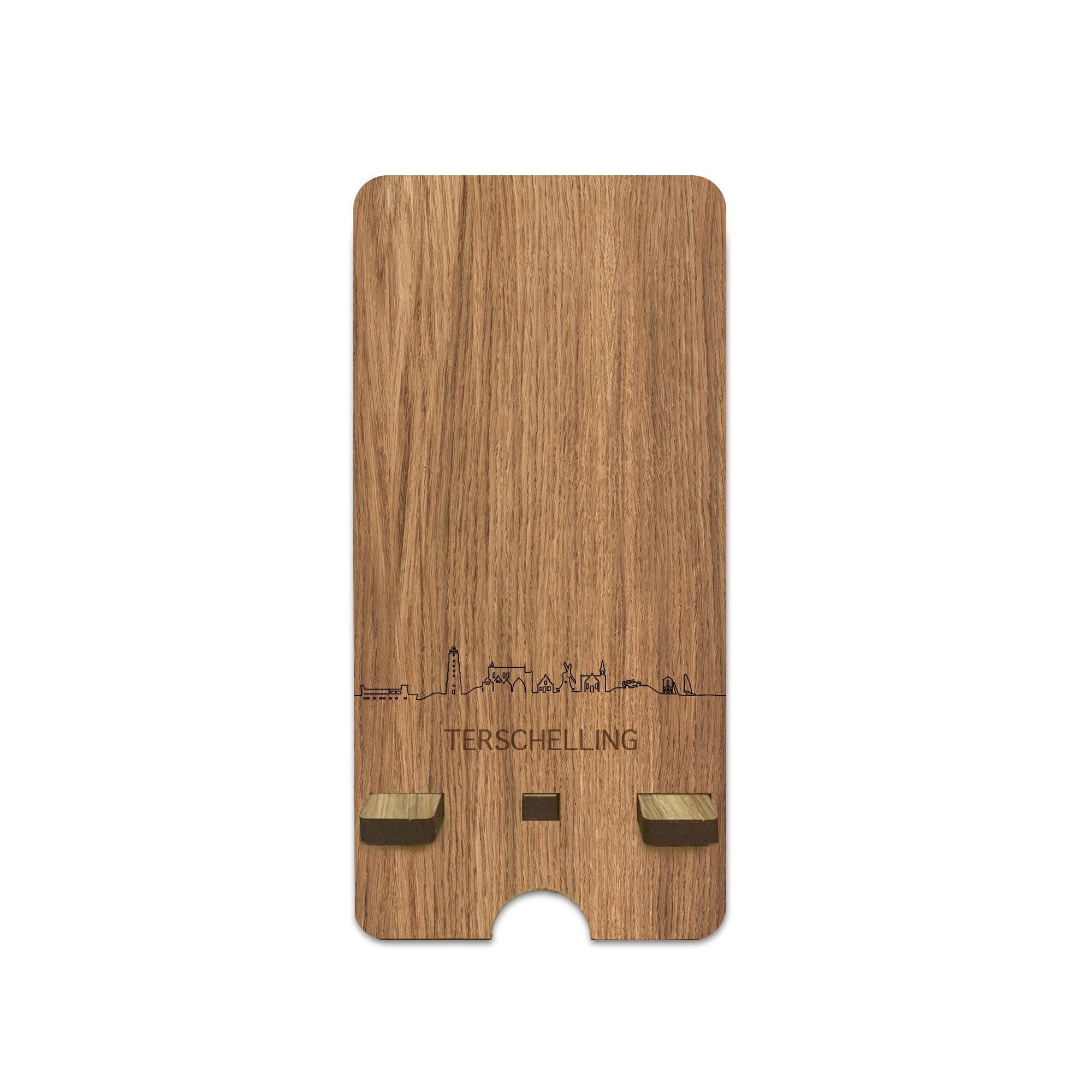 Met de Skyline Telefoonhouder Terschelling wordt thuiswerken en videobellen een eitje. De handige telefoonhouder is de ideale standaard om op je bureau of werktafel te zetten. Met precisie wordt de skyline van Terschelling in deze eyecatcher gegraveerd.