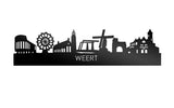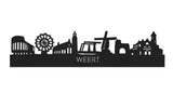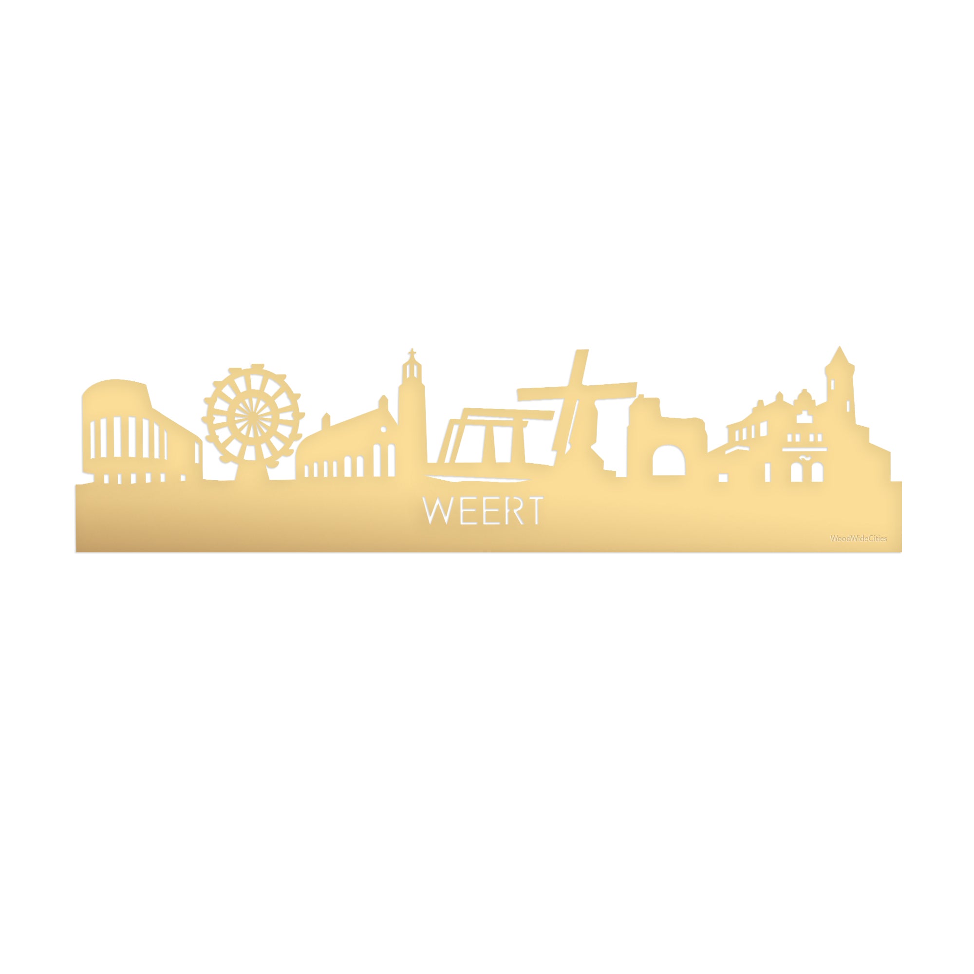 Je herkent ze vast allemaal; de hoogtepunten van deze geliefde plaats: Stadhuis gemeente Weert, Reuzenrad, Stadskerk Weert, Biesterbrug, Sint Jan Molen Stramproy, Kasteelpoort Nijenborgh, Station Weert. De skyline is gemaakt in samenwerking met inwoners uit Weert en het silhouet komt uit het creatieve brein van onze eigen kunstenares. Met liefde gemaakt!