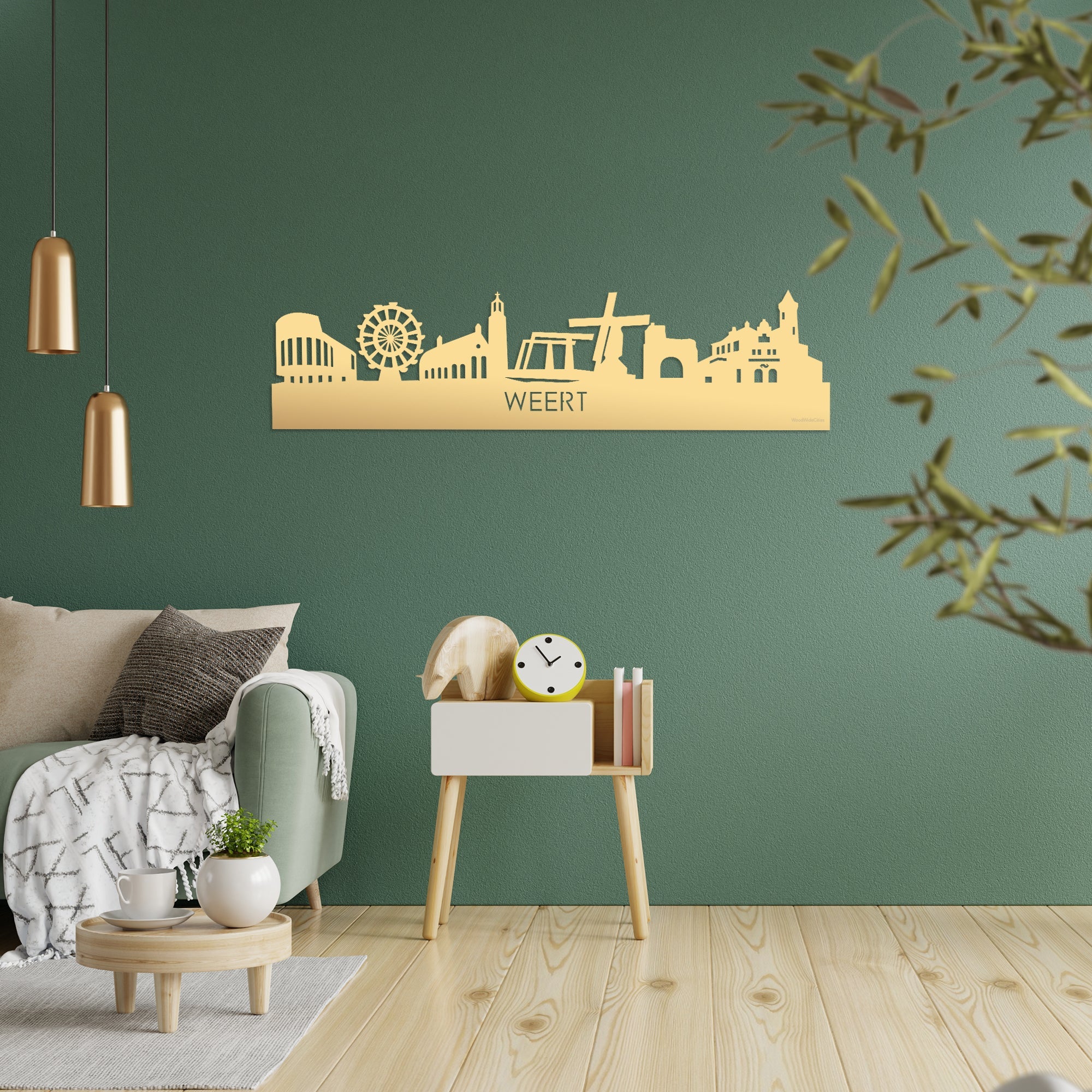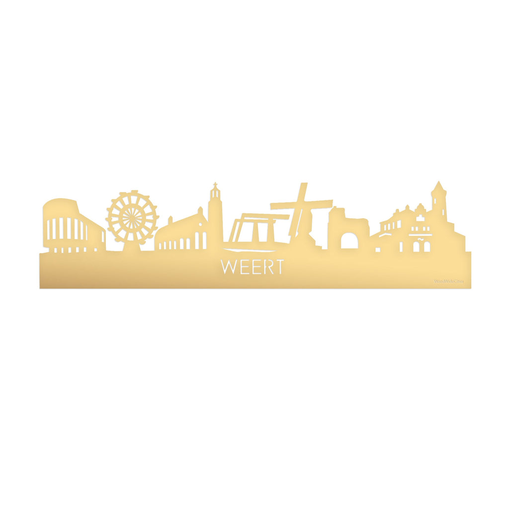 Met deze wanddecoratie van Skyline Weert Goud Metallic aan de muur heb je een echte eyecatcher in huis. Het is een mooie herinnering aan je geboorteplaats, een aandenken van die te gekke stedentrip of de stad waar je jarenlang hebt gestudeerd. Een leuk afscheidscadeau of een bijzonder geschenk voor moeder- of vaderdag en andere mijlpalen zoals het behalen van diploma’s, een spetterend cadeau voor je dochter die gaat studeren in een andere stad of voor een housewarming. Geef je deze skyline van cadeau, dan steel jij gegarandeerd de show!