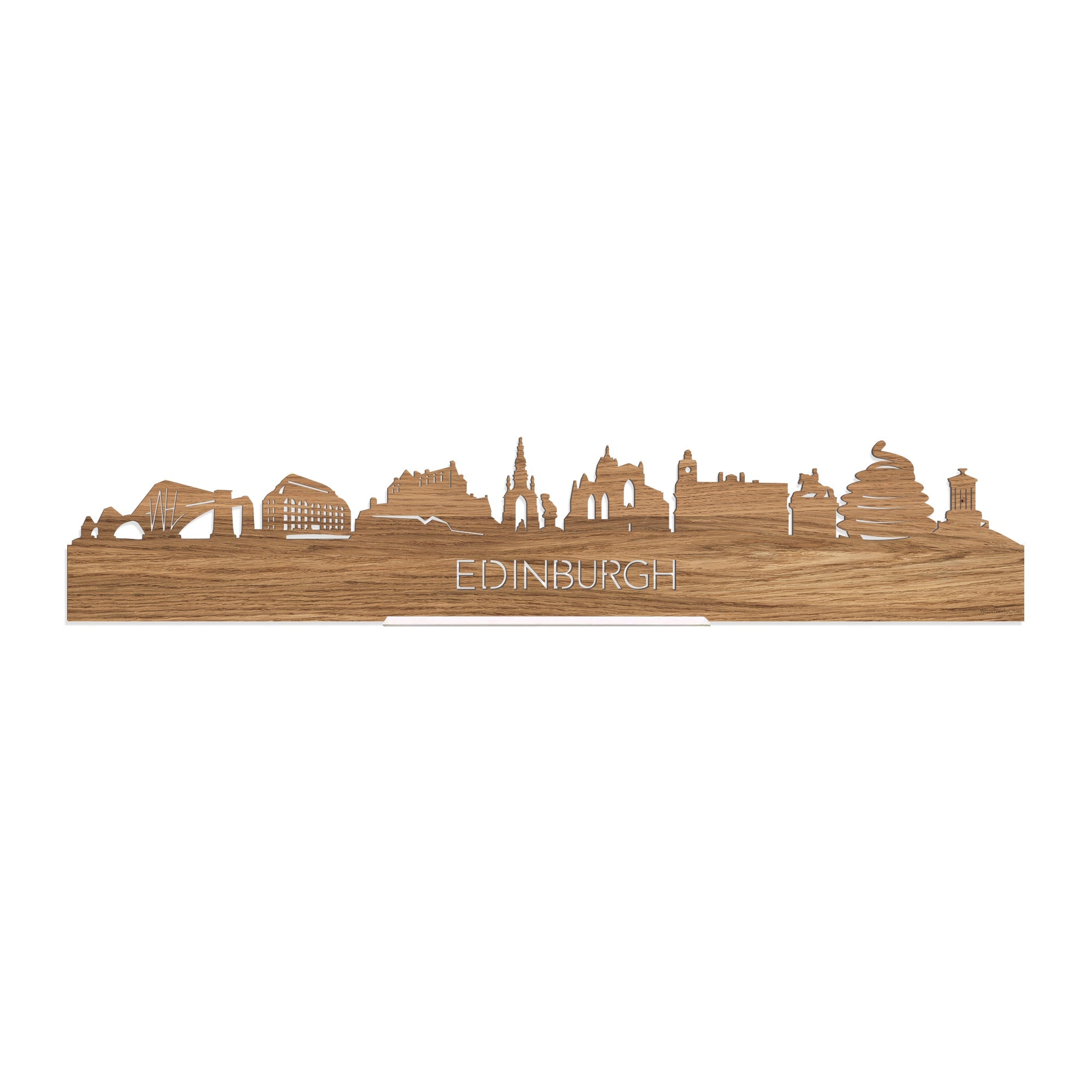 De skyline van Edinburgh is verkrijgbaar in verschillende soorten hout: zwart MDF, eiken, bamboe, noten en palissander. De houtsoorten zijn duurzaam, ecologisch en gekeurd. Dat vinden wij belangrijk! Bij het produceren van houten decoraties komen geen schadelijke stoffen vrij, hout gaat langer mee en het is biologisch afbreekbaar. Daarnaast is de houten afwerking bij elke skyline anders. Dat maakt jouw skyline uniek!