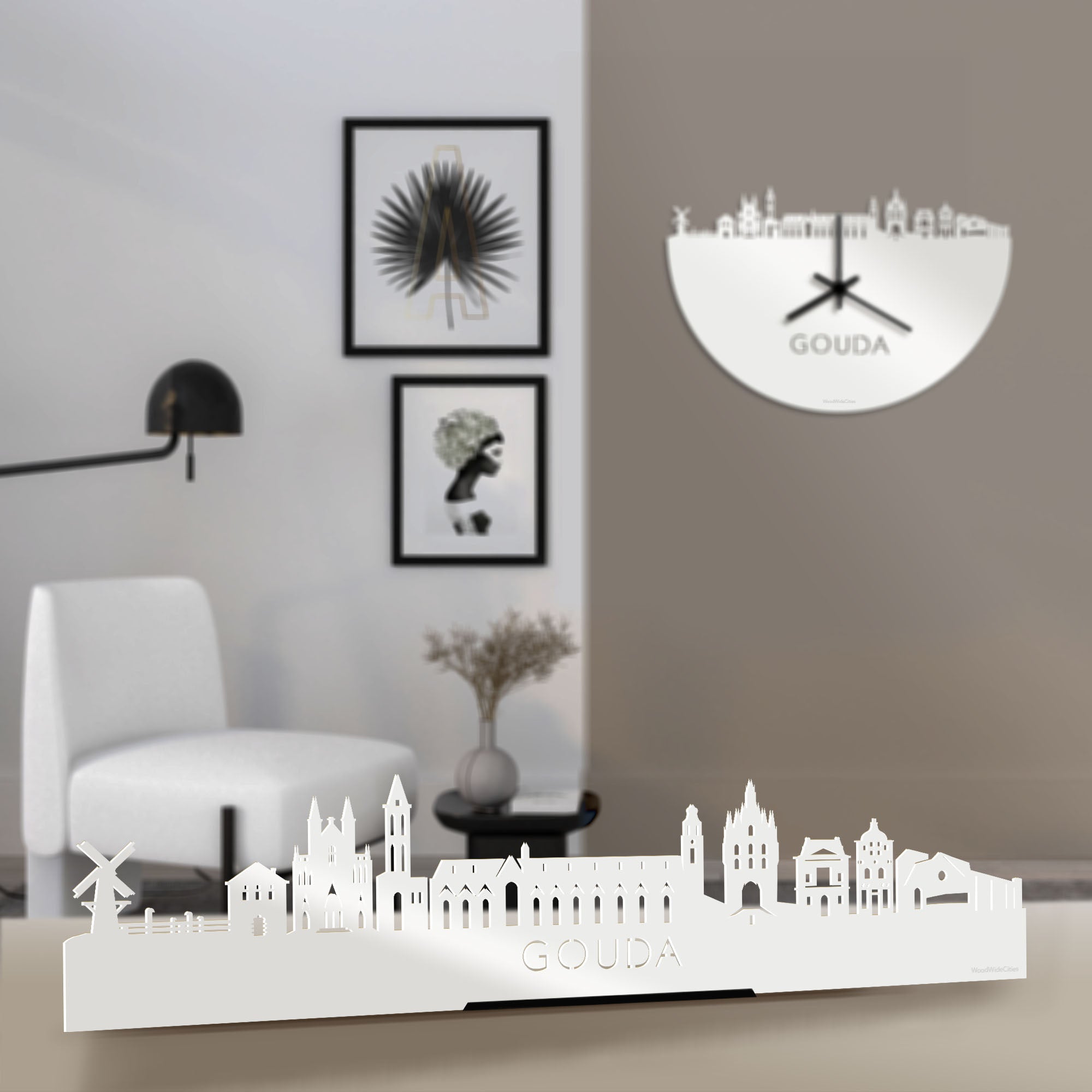 Je herkent ze vast allemaal, de hoogtepunten van deze mooie plaats. De skyline is gemaakt in samenwerking met locals uit Gouda. Je ziet Molen de Roode Leeuw, De kleiweg brug, Agnietenkapel, Gouwekerk Gouda, Barbara toren, Sint Janskerk Gouda, Het oude stadshuis Gouda, Goudse waag, Woning de vier gekroonden en de Goudse Schouwburg.