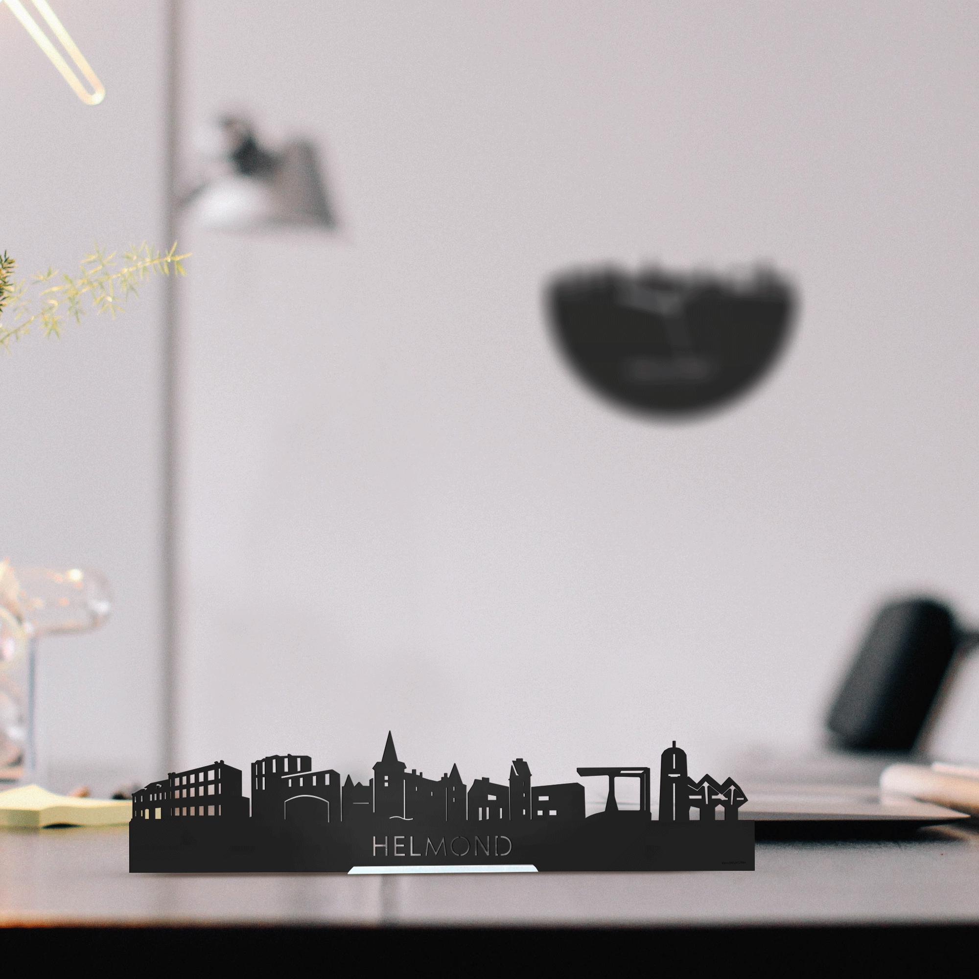 Je herkent ze vast allemaal; de hoogtepunten van deze geliefde plaats: Cacaofabriek Helmond, boscotondo, kasteel Helmond, klaverhof, de veestraatbrug, de watertoren en de kubuswoningen. De skyline is gemaakt in samenwerking met Helmond ondernemers en het silhouet komt uit het creatieve brein van een architect, dus alle verhoudingen kloppen.