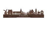 De skyline van Kampen is verkrijgbaar in verschillende soorten hout: zwart MDF, eiken, bamboe, noten en palissander. De houtsoorten zijn duurzaam, ecologisch en gekeurd. Dat vinden wij belangrijk! Bij het produceren van houten decoraties komen geen schadelijke stoffen vrij, hout gaat langer mee en het is biologisch afbreekbaar. Daarnaast is de houten afwerking bij elke skyline anders. Dat maakt jouw skyline uniek!
