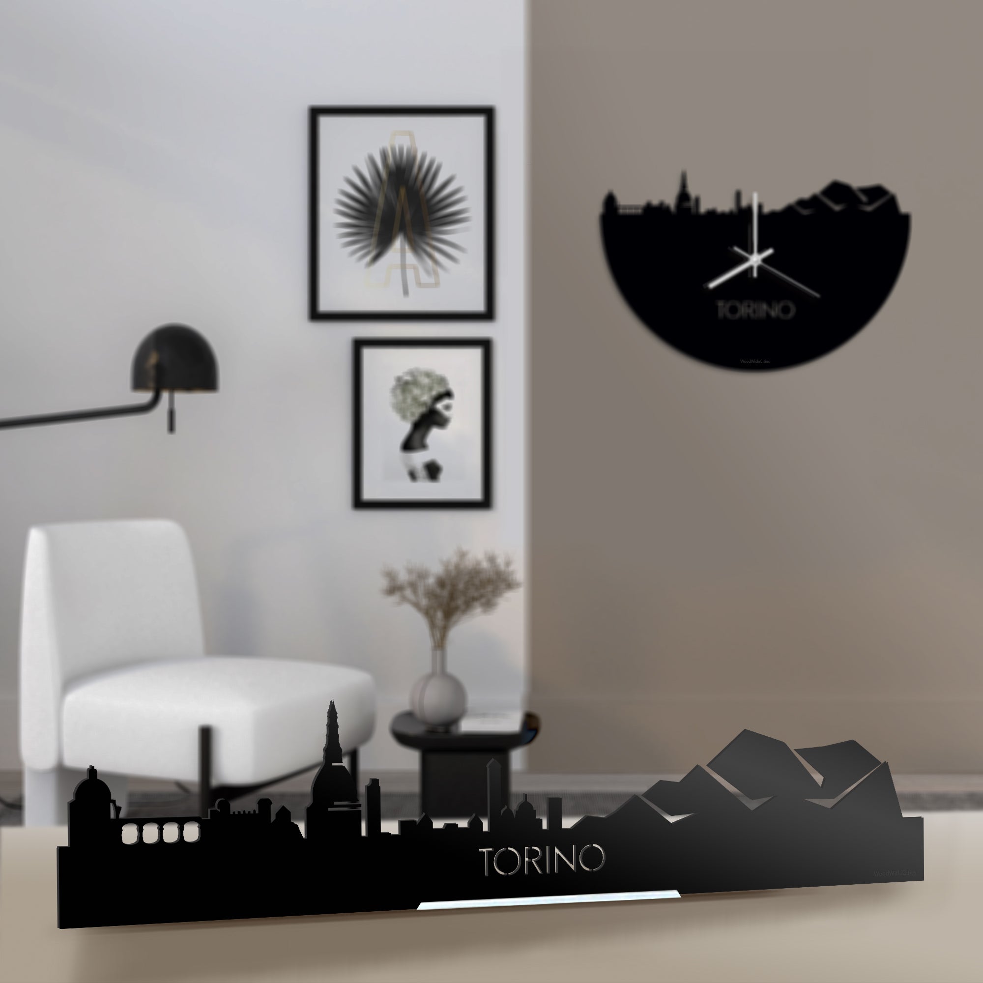 Je herkent ze vast allemaal; de hoogtepunten van deze geliefde plaats: Ponte Vittorio Emanuele I, Borgo Medievale, Mole Antonelliana, Torre della Littoria, Villa della Regina, Santuario La Consolata, Alpi. De skyline is gemaakt in samenwerking met inwoners uit Torino en het silhouet komt uit het creatieve brein van onze eigen kunstenares. Met liefde gemaakt!