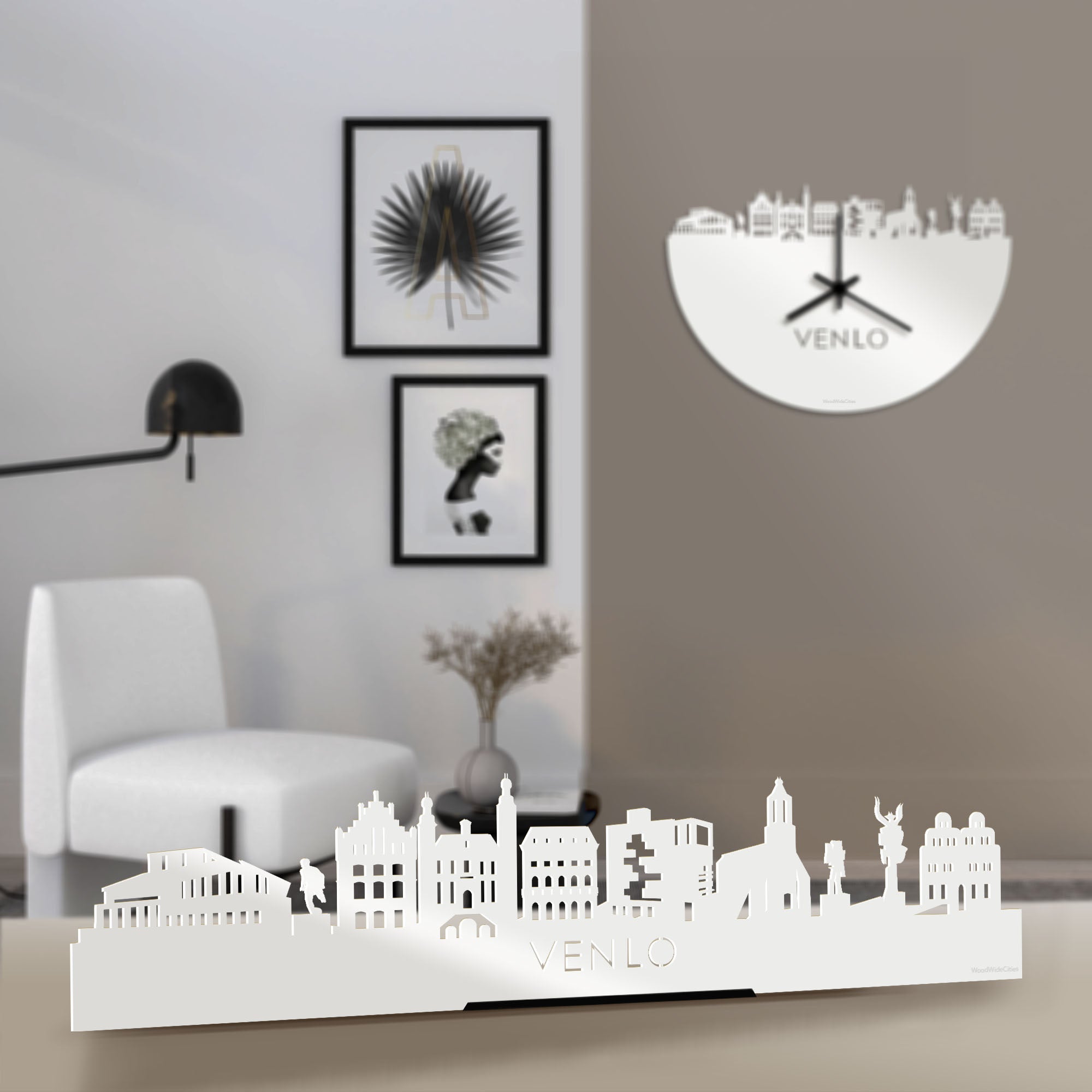 Je herkent ze vast allemaal, de hoogtepunten van deze mooie plaats. De skyline is gemaakt in samenwerking met locals uit Venlo. Je ziet De Maaspoort, Stadion de Koel, Romerhuis, Cafe Central, Stadskantoor, De Sint-Martinusbasiliek, Maasbrug en Ald Weishoes.